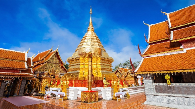 Nằm trên đỉnh núi Doi Suthep, đây là ngôi chùa linh thiêng và nổi tiếng nhất Chiang Mai, gắn liền với biểu tượng của thành phố. Chùa gây ấn tượng với bảo tháp dát vàng rực rỡ, không gian trang nghiêm và tầm nhìn bao quát toàn cảnh Chiang Mai từ trên cao. Để lên chùa, du khách sẽ chinh phục hơn 300 bậc thang uốn lượn hai bên là tượng rắn Naga đặc trưng – một trải nghiệm vừa thú vị vừa mang đậm dấu ấn văn hoá Thái Lan. ✨